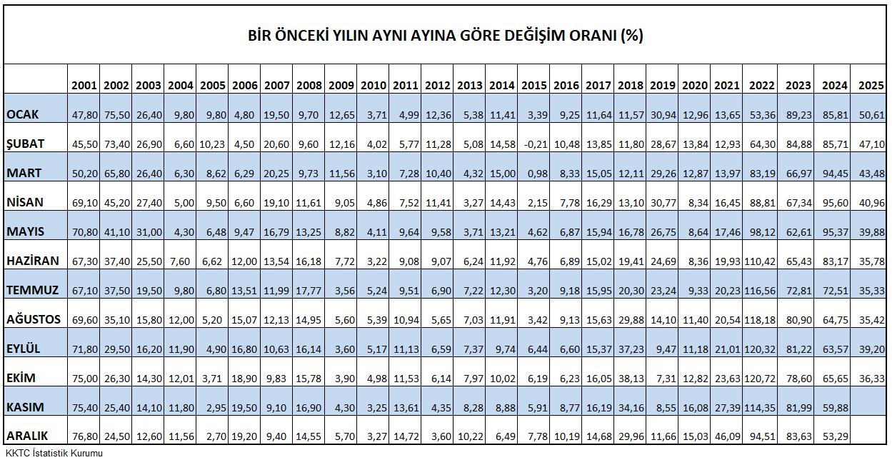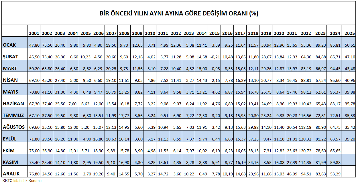 BİR ÖNCEKİ YILIN AYNI AYINA GÖRE DEĞİŞİM ORANI (%)